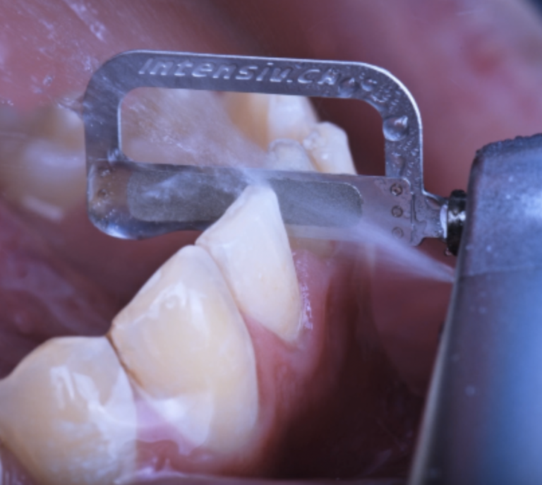 Il s’effectue à l’aide d’un papier abrasif (action manuelle) ou à l’aide d’un support rotatif portant ce même papier abrasif (action mécanique) dans les zones où l’émail se détériore d’habitude naturellement avec la mastication ou le temps. Quelque soit la technique, on insère le papier abrasif entre les dents comme du fil dentaire !